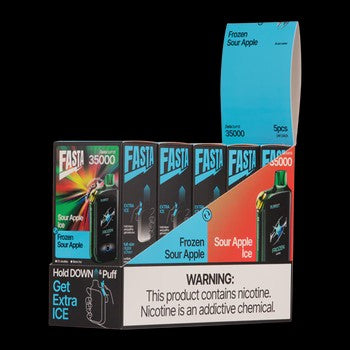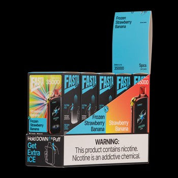 Have you ever imagined a disposable vape with three flavor options? Fasta Burrst 35K realizes your wildest dream with double tanks of 25ml e-juice in total and a switch for flavor changing. The novel flavor-changing technology enables Fasta Burrst to carry one main flavor tank of 18ml e-juice and a secondary tank of 7ml vape juice at the same time. With only one click, you can use one switch to enjoy icy, bubbly, and mixed flavors. Also, there is a fancy and useful screen for information and unique animations. Fruit, soda, or icy, all these three flavors are available only in one Fasta Burrst 35K.